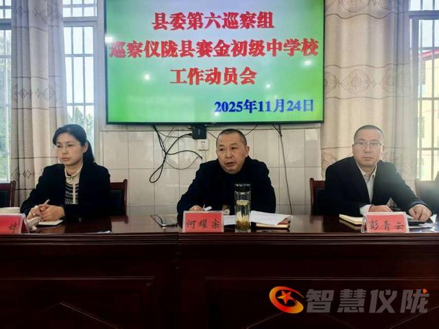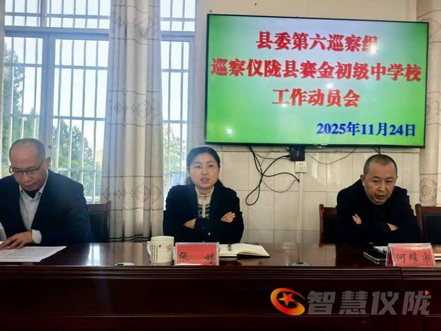 根据县委统一部署,2025年11月24日下午,县委第六巡察组巡察仪陇县赛金初级中学校工作动员会在该校会议室隆重召开。县委第六巡察组组长何耀宗同志出席会议并作动员讲话。县委第六巡察组副组长彭青云同志及全体成员,县教体局党组成员、总督学张婷同志,复兴教育督导组组长李明同志,赛金中学全体教师及退休教师代表唐业福同志共计50余人参加了会议。会议由赛金中学党支部书记、校长罗祎主持。