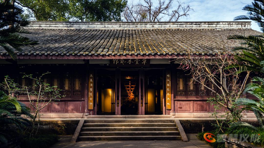 成都的冬日,难得放晴。阳光洒在浣花溪畔,草堂在金色的光里安静温柔。
