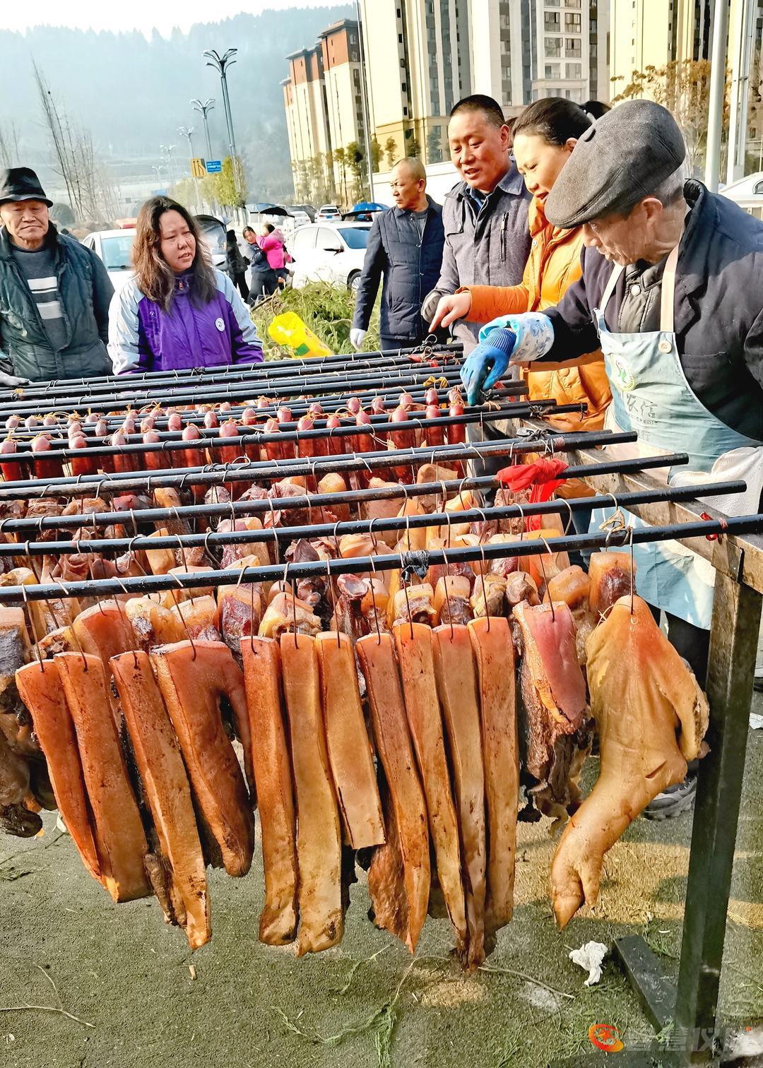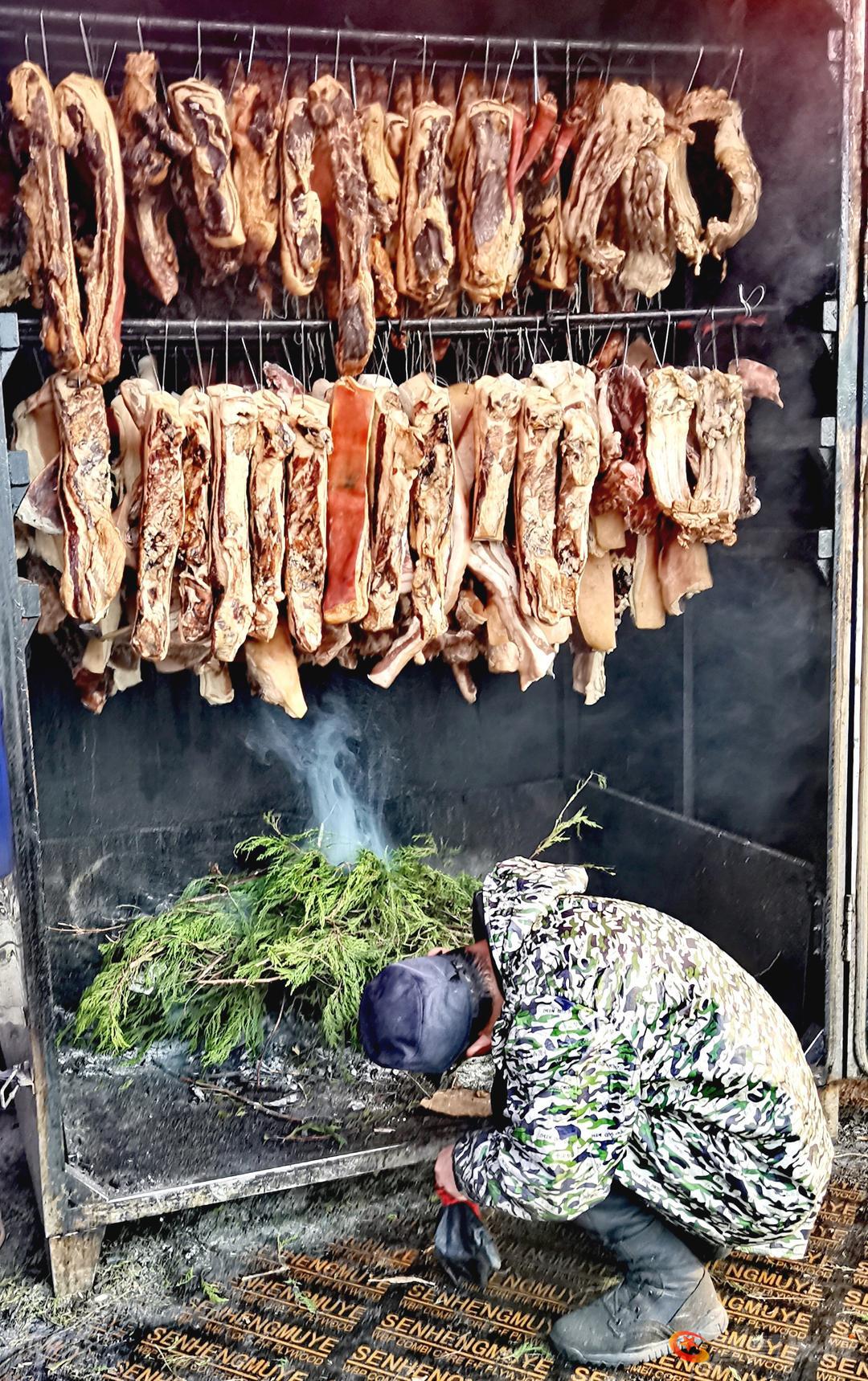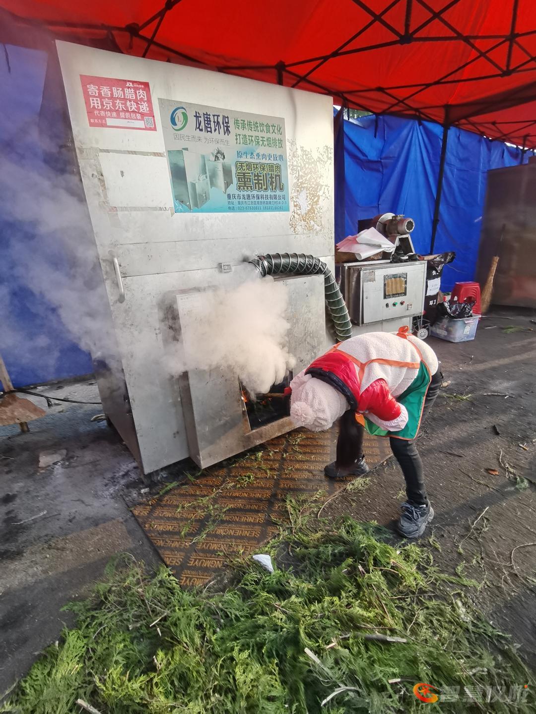 摄影爱好者,走进仪陇县城设置(无烟环保)腊肉熏制机处,市民们腌制的肉质品在工作人员指导下,有序排放熏制。传承传统文化,打造环保无烟排放,充分体会到原生态熏制腊肉更放心食用。