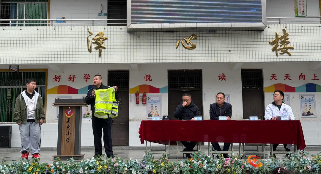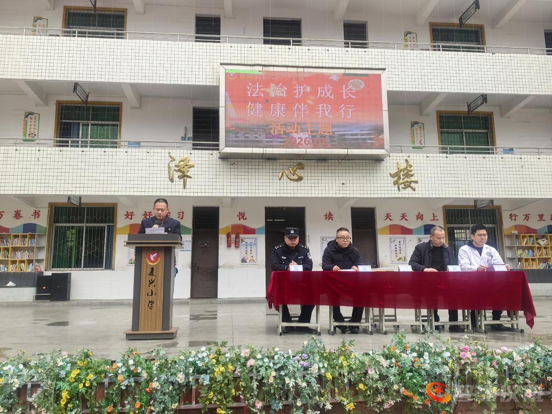 为深化法治校园、平安校园建设,增强学生法治观念、安全意识与健康素养,我校于2026年3月18日隆重举行“法治护成长,健康伴我行”主题教育活动。复兴镇人民政府应急办副主任、司法所所长、派出所民警、卫生院医务科科长应邀出席并作专题宣讲,全体师生参加活动。