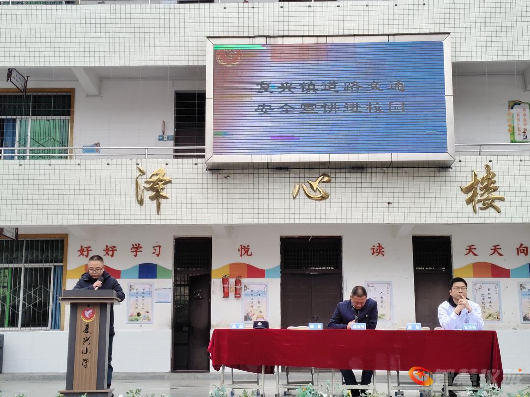 复兴镇人民政府应急办副主任陈磊同志讲解交通安全及火灾、地震、拥挤踩踏等突发事件的应急避险、自救互救技能,提升师生应急处置能力,夯实校园安全底线。